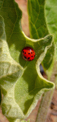 I have not applied any bug spray yet. Have not seen any bugs or any damage. I have a large army of tree frogs that may be helping me at night? Will post video soon. You have to hear them to believe them! Anyway, here is the first and only bug seen so far. SPRAY POSTPONED!! This Lady Bug is an asset.